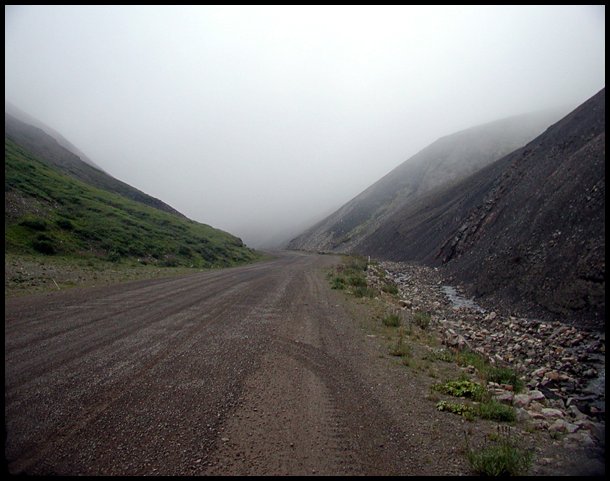 I had just passed through a stretch of highway composed of marbles 2 to 3 inches thick. As long as I stayed in a tire track left by a previous car, I was OK. Obviously, my speed went way down, and a car wanted to pass. As soon as I left the track, the bike went into a wobble and headed for the ditch. I managed to recover by tearing my eyes away from the ditch, applying power, and sharply countersteering to the left. Ahead was a soft bank of fog. When I entered the fog, my visor misted up and I lost all forward visibility. When I raised the visor, my glasses misted up and I again lost all forward visibility. I ended up looking straight down at my feet to see the road while I coasted to a stop. The only way I could restore vision was by cracking the visor open halfway and dropping my glasses to the bridge of my nose. This opened up a narrow field of view, allowing enough visibility to see about 20 feet ahead. In addition, it was raining and blowing from left to right. Something kept on stinging my face. It was hail. | |||